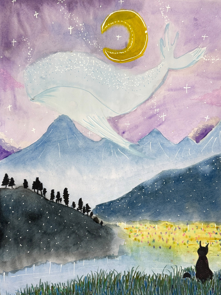 第二名:〈美好的初夏夜晚〉以低彩度的色調營造夜晚的靜謐氣氛,畫面細膩而耐看,讓人聯想到童年時在鄉間夜遊的記憶。