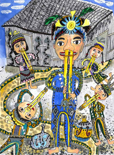 第一名:作品技法多樣,畫面穩定,清楚呈現了原住民文化體驗的驚奇與感動,節奏感強烈。